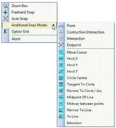 If selected, presents you with an additional snap menu of the more commonly used snaps. If further snaps are required then use the Snap menu or create a custom snap menu.