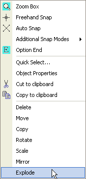 If a single object is selected and it is either a block, 2D polyline, 3D polyline, hatch, text, dimension or any object that can normally be exploded then the explode option is presented.