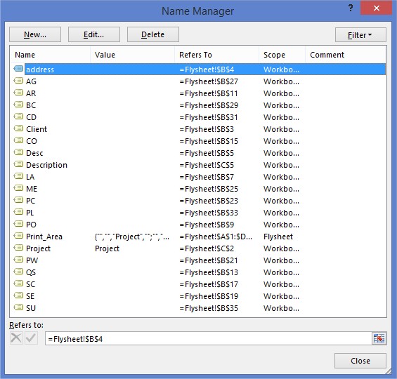 Project Tracker uses Named Ranges to determine where to enter information into the templates. If you delete a Named Range, Project Tracker will not be able to enter the required information and may throw an error.